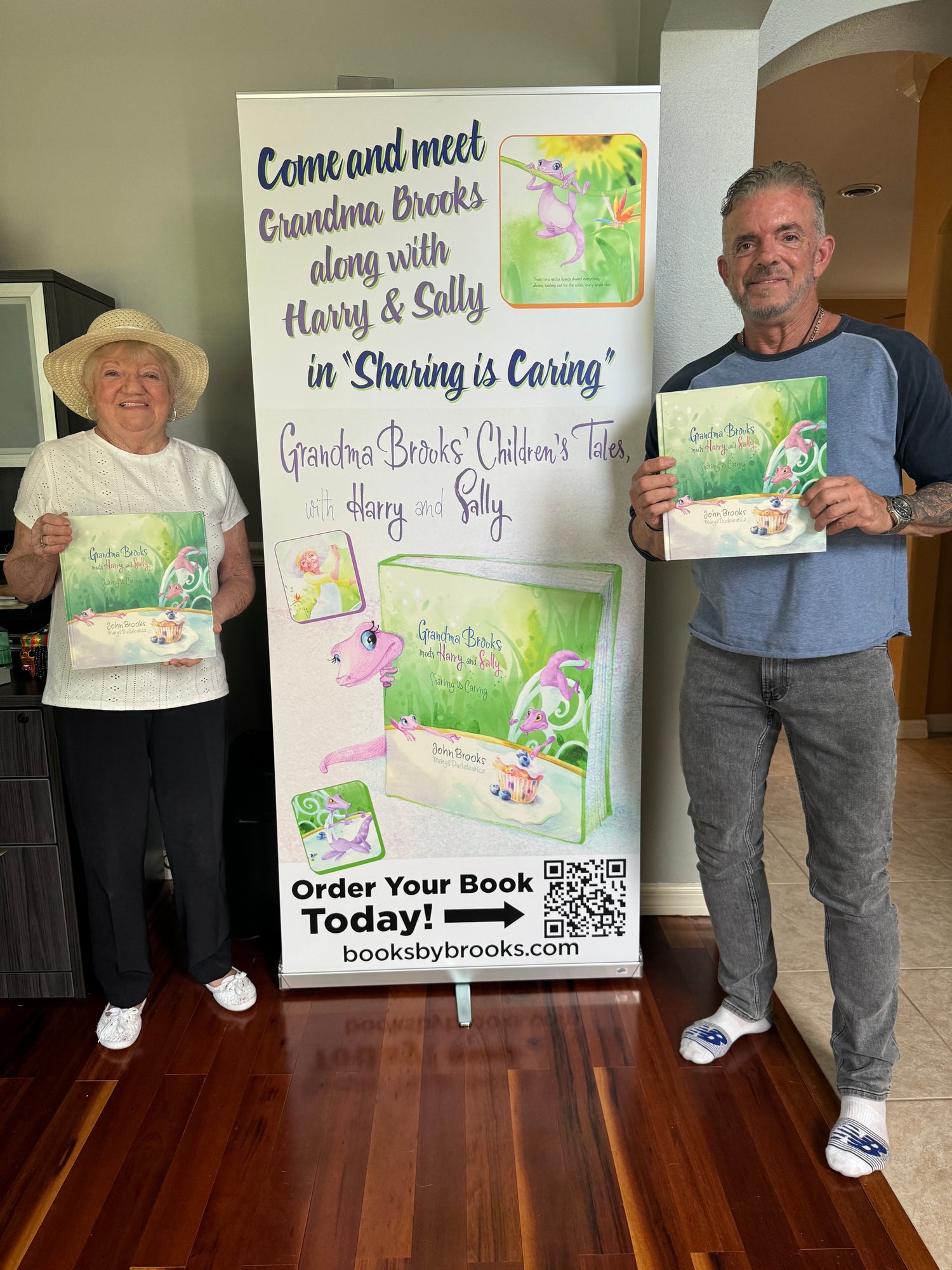 Welcome to our website, BooksByBrooks.com. My name is John Brooks and I am currently the author in developing the Grandma Brooks and Harry and Sally children’s stories. These classic tales have a rich family history, started by Grandma Brooks years ago when our three children were young toddlers, eager in imagination and creative thought. Fast forward twenty years and my promise to my mom has come true, as we now bring those wonderful talking lizards, Harry and Sally, to all children across the globe in the form of a childrens book series. Our first book, “ Grandma Brooks meets Harry and Sally, Sharing is Caring” is now complete and ready to share.